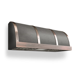 The Archer range hood is a statement of refined craftsmanship, blending seamlessly with diverse kitchen styles, from the rustic charm of a Napa Farmhouse to the sleek, modern lines of a New York Loft. This custom range hood features a carefully crafted, curved silhouette with artisanal metallic accents, offering a polished look that complements both minimalist and richly textured interiors. With its versatile design, the Archer can adapt effortlessly to kitchens with high ceilings, large islands, and open floor plans, serving as a focal point that draws the eye while enhancing functional flow and architectural cohesion.