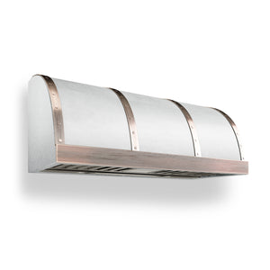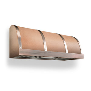 Absolutely! We offer a wide range of shapes and finishes to perfectly suit your kitchen's design. Choose from elegant, curved or bell-shaped hoods that bring a timeless look, or go for a bold-looking box-style hood for a modern aesthetic. If you’re drawn to unique designs, consider a scooped, convex, or concave shape that adds depth and visual interest. Our popular chimney-style hoods are perfect for high ceilings and open layouts, especially above a kitchen island, creating a bright and airy focal point. You can also select polished or matte finishes to complement your kitchen’s decor, along with decorative straps and rivets to add character—whether high or low on the hood, for a custom, handcrafted look.