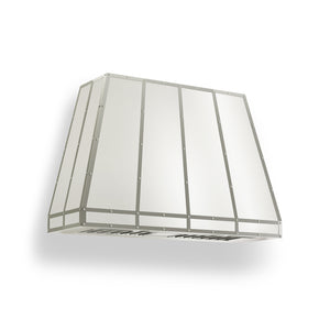 Absolutely! We offer a wide range of shapes and finishes to perfectly suit your kitchen's design. Choose from elegant, curved or bell-shaped hoods that bring a timeless look, or go for a bold-looking box-style hood for a modern aesthetic. If you’re drawn to unique designs, consider a scooped, convex, or concave shape that adds depth and visual interest. Our popular chimney-style hoods are perfect for high ceilings and open layouts, especially above a kitchen island, creating a bright and airy focal point. You can also select polished or matte finishes to complement your kitchen’s decor, along with decorative straps and rivets to add character—whether high or low on the hood, for a custom, handcrafted look.