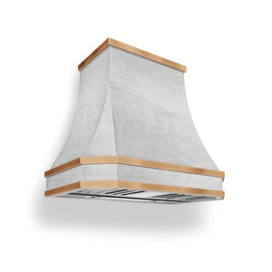 Absolutely! We offer a wide range of shapes and finishes to perfectly suit your kitchen's design. Choose from elegant, curved or bell-shaped hoods that bring a timeless look, or go for a bold-looking box-style hood for a modern aesthetic. If you’re drawn to unique designs, consider a scooped, convex, or concave shape that adds depth and visual interest. Our popular chimney-style hoods are perfect for high ceilings and open layouts, especially above a kitchen island, creating a bright and airy focal point. You can also select polished or matte finishes to complement your kitchen’s decor, along with decorative straps and rivets to add character—whether high or low on the hood, for a custom, handcrafted look.