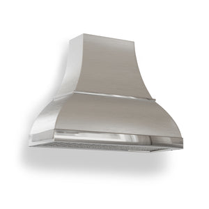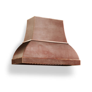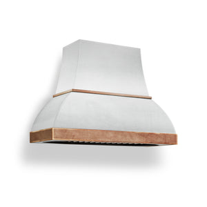 Absolutely! We offer a wide range of shapes and finishes to perfectly suit your kitchen's design. Choose from elegant, curved or bell-shaped hoods that bring a timeless look, or go for a bold-looking box-style hood for a modern aesthetic. If you’re drawn to unique designs, consider a scooped, convex, or concave shape that adds depth and visual interest. Our popular chimney-style hoods are perfect for high ceilings and open layouts, especially above a kitchen island, creating a bright and airy focal point. You can also select polished or matte finishes to complement your kitchen’s decor, along with decorative straps and rivets to add character—whether high or low on the hood, for a custom, handcrafted look.