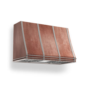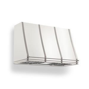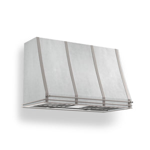 Absolutely! We offer a wide range of shapes and finishes to perfectly suit your kitchen's design. Choose from elegant, curved or bell-shaped hoods that bring a timeless look, or go for a bold-looking box-style hood for a modern aesthetic. If you’re drawn to unique designs, consider a scooped, convex, or concave shape that adds depth and visual interest. Our popular chimney-style hoods are perfect for high ceilings and open layouts, especially above a kitchen island, creating a bright and airy focal point. You can also select polished or matte finishes to complement your kitchen’s decor, along with decorative straps and rivets to add character—whether high or low on the hood, for a custom, handcrafted look.