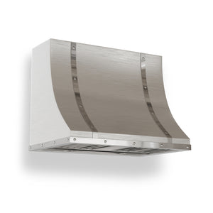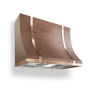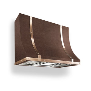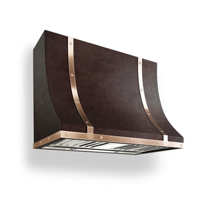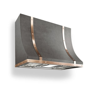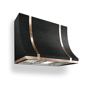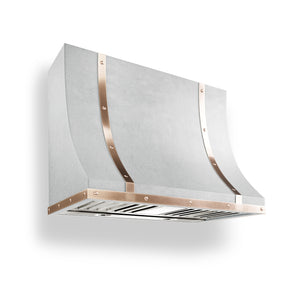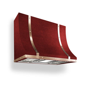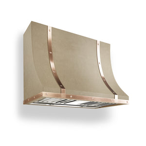 Absolutely! We offer a wide range of shapes and finishes to perfectly suit your kitchen's design. Choose from elegant, curved or bell-shaped hoods that bring a timeless look, or go for a bold-looking box-style hood for a modern aesthetic. If you’re drawn to unique designs, consider a scooped, convex, or concave shape that adds depth and visual interest. Our popular chimney-style hoods are perfect for high ceilings and open layouts, especially above a kitchen island, creating a bright and airy focal point. You can also select polished or matte finishes to complement your kitchen’s decor, along with decorative straps and rivets to add character—whether high or low on the hood, for a custom, handcrafted look.